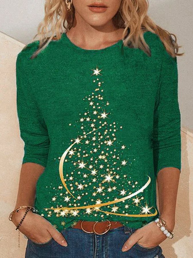 LUYE Christmas tree Crew Neck Shirts & Tops